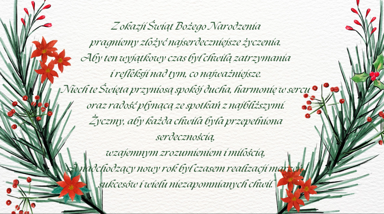 Z okazji nadchodzących Świąt Bożego Narodzenia, składamy wszystkim najserdeczniejsze życzenia, a Nowy Rok niech obfituje w radość i same piękne chwile!